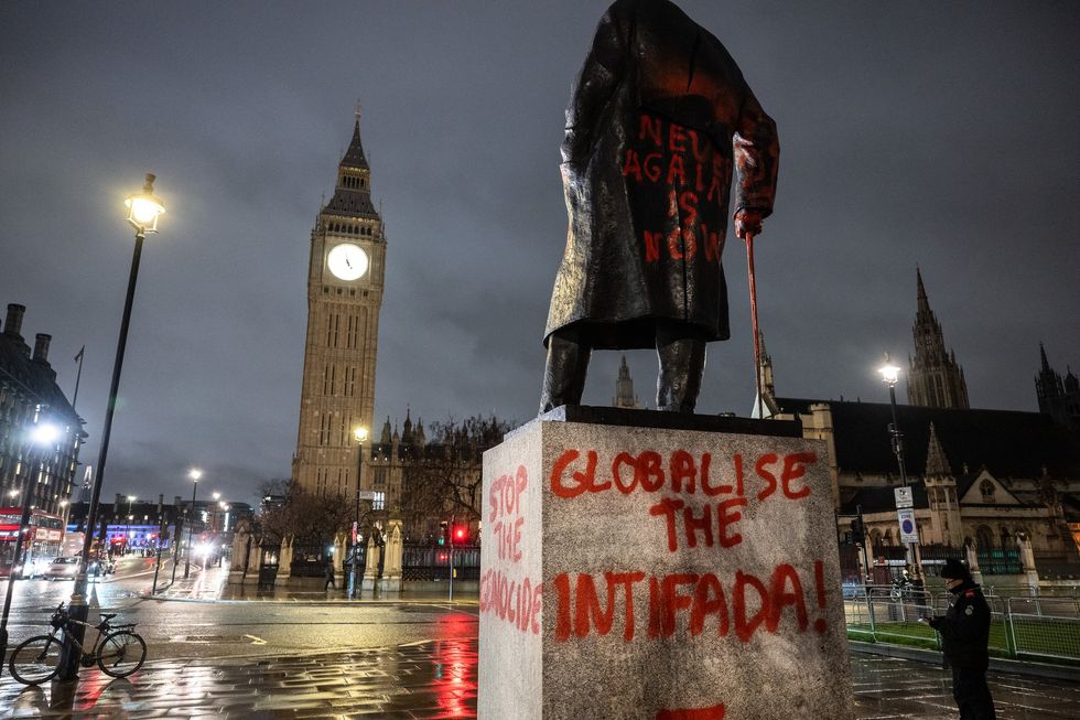 The graffiti daubed on the statue included the phrase "Zionist war criminal" and "globalise the intifada",