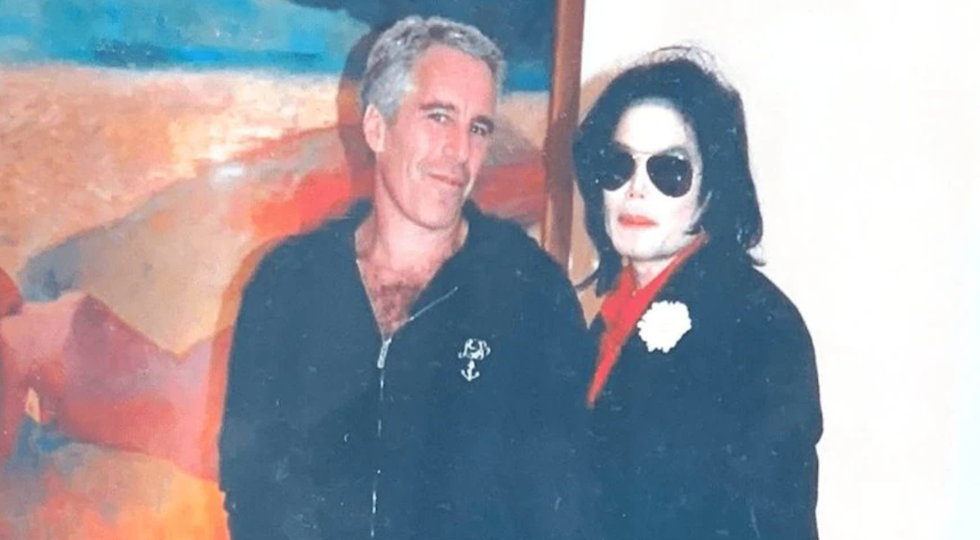 Behind them is Ghislaine Maxwell, Epstein's associate.