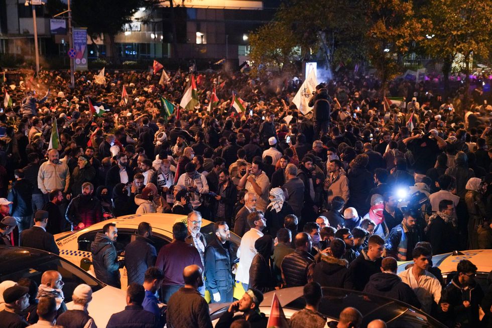 In Istanbul, protesters threw fireworks and other items on fire at the Israeli embassy