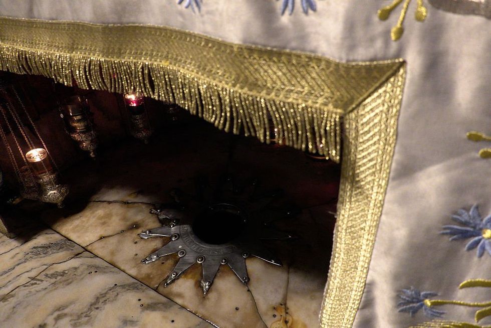 Part of the fourteen-point star marking the birthplace of Jesus in the Nativity Grotto