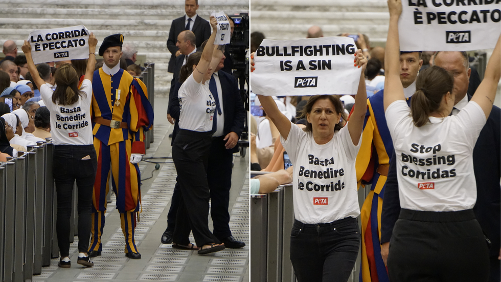 "Peta is calling on His Holiness to condemn the vile bullfighting industry and cut the Church's ties with these bloody, merciless spectacles."