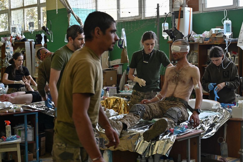 Medics help injured Ukrainian servicemen inside a frontline medical stabilisation point, amid Russia's attack on Ukraine, in Ukraine July 27, 2023.