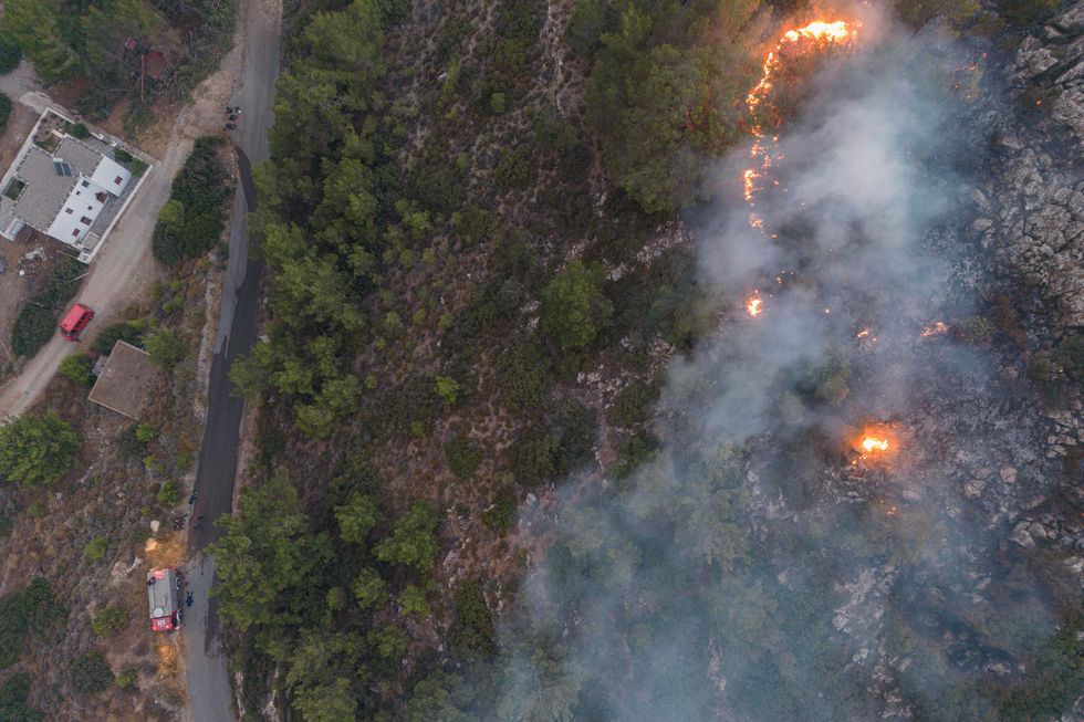 The seventh day of wildfires in Greece, infernos have spread at an alarming rate, scorching the earth and herding humans towards the beaches.
