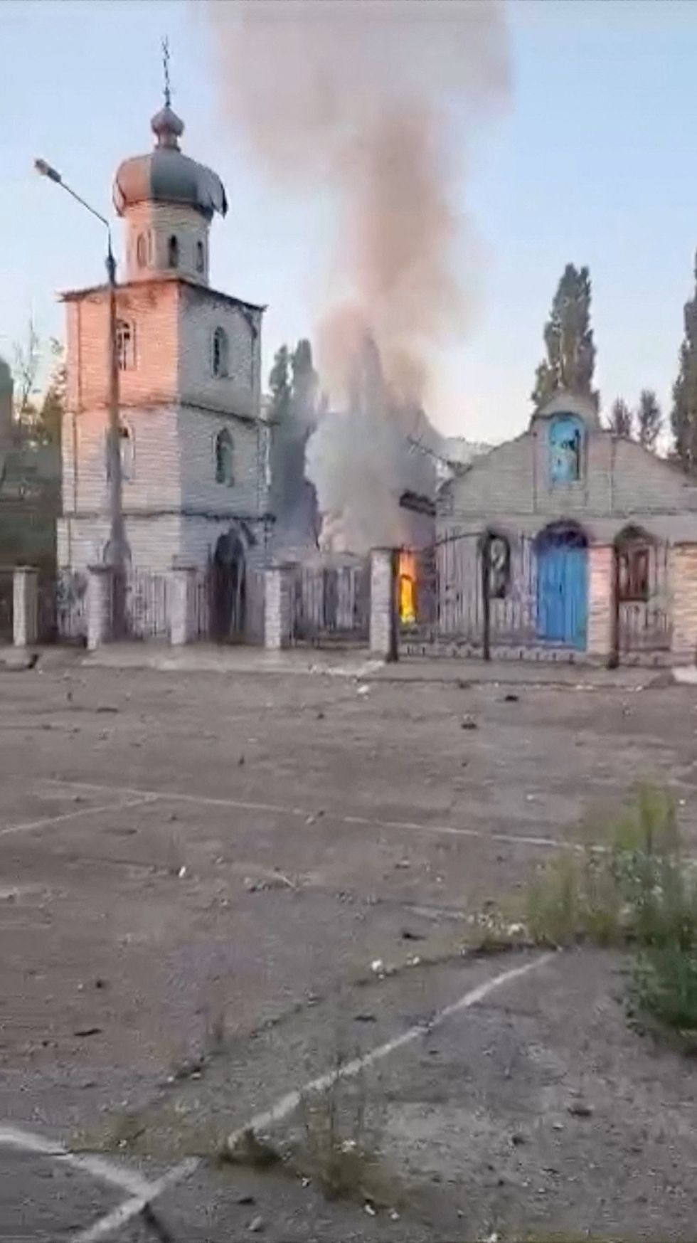 Smoke rises from a fire in the aftermath of a Russian missile strike, amid Russia's attack on Ukraine, in Zaporizhzhia, Ukraine, in this still image obtained from a video published by the official Telegram account of Ukraine's President Volodymyr Zelenskiy on August 9, 2023.