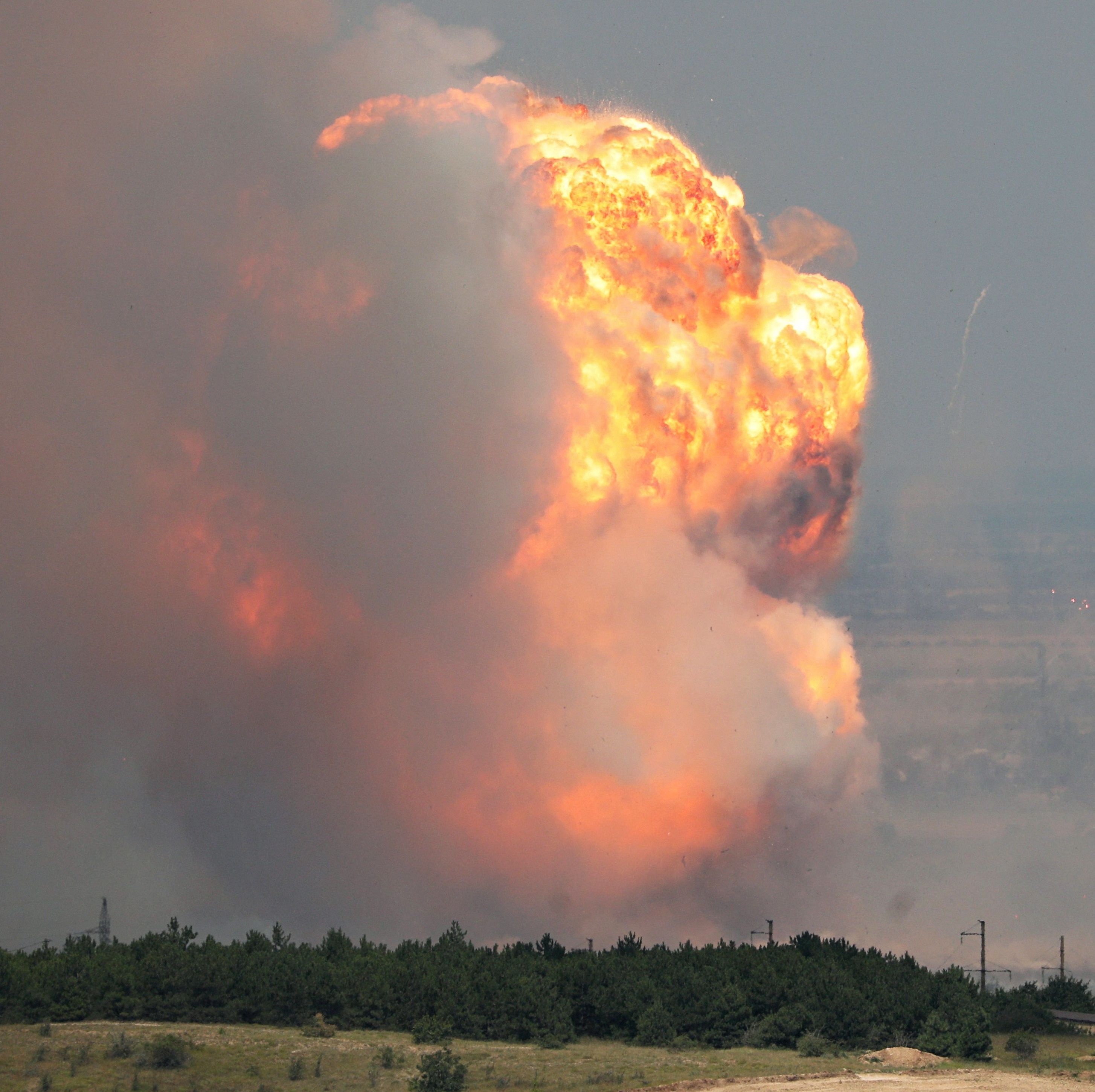 Flames engulfed the Kirovske military base in Crimea on Wednesday morning, after a series of explosions ripped through a Russian ammunition depot.