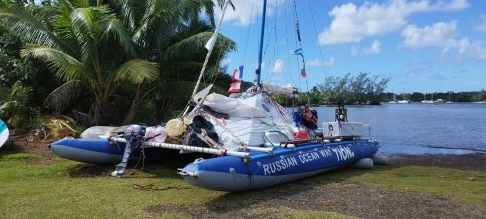 The catamaran, which was re-enacting the voyage of a 19th century Russian adventurer, was sailing from Vanuatu to Cairns when both of the boat’s hulls were damaged during “several shark attacks”.