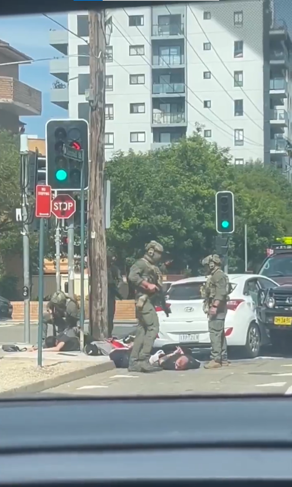 Heavily armed police officers rammed a car to arrest at least five people in Sydney, Australia.