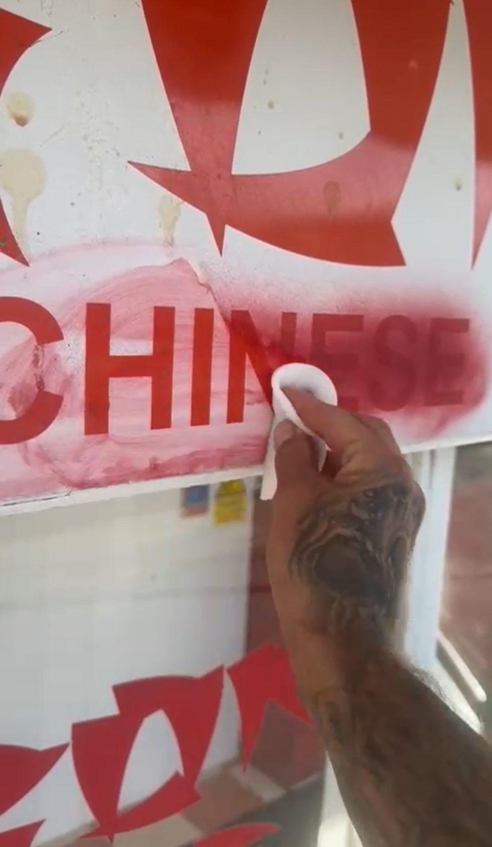 The word "Chinese" on the business's sign was meanwhile crossed out with red paint.