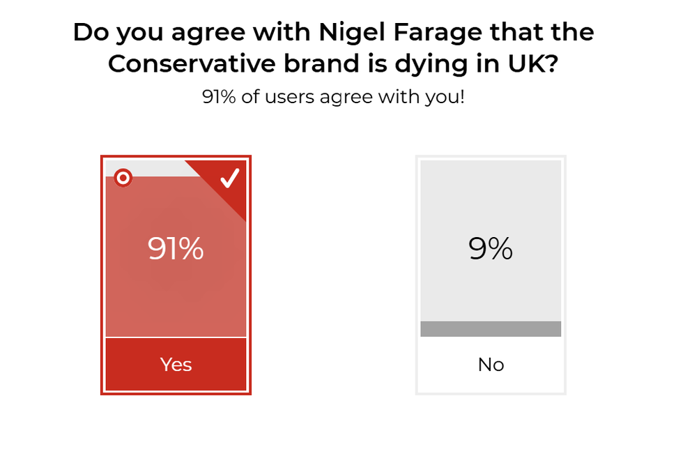 POLL OF THE DAY: Do you agree with Nigel Farage that the Conservative brand is dying in Britain? YOUR VERDICT