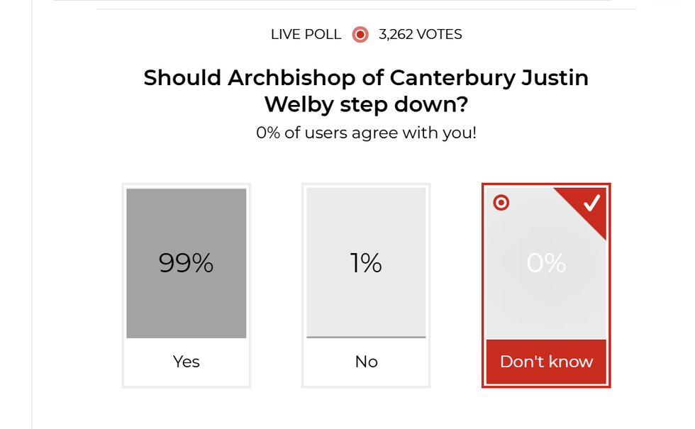 POLL OF THE DAY: Should Archbishop of Canterbury Justin Welby step down?