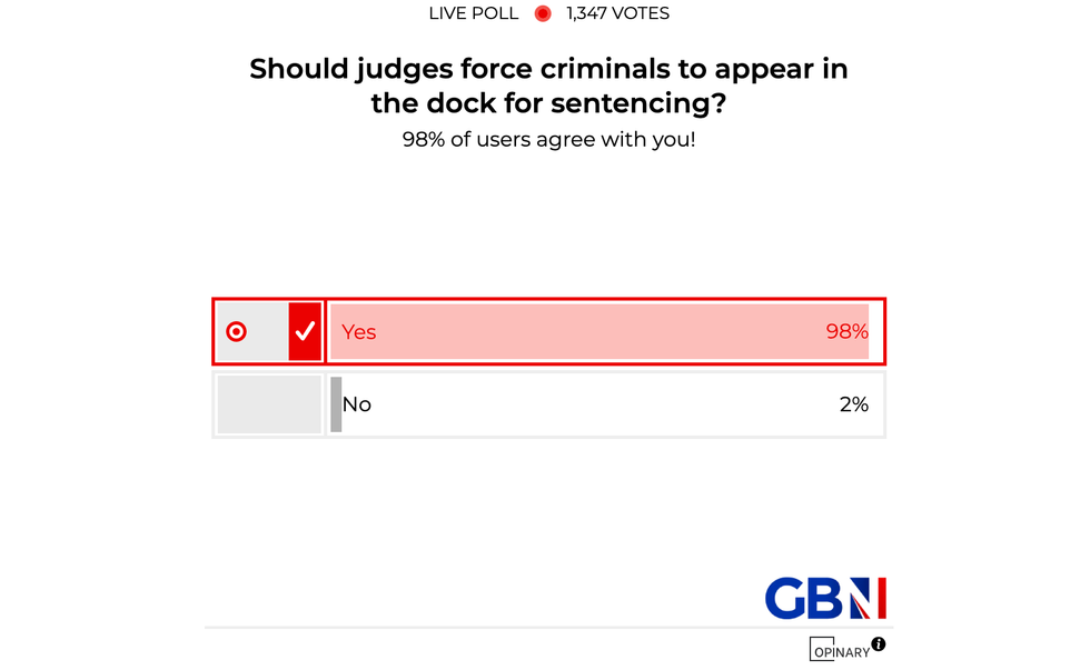A huge 98 per cent of GB News members who voted in the poll said judges should force criminals to appear in the dock for sentencing, while just two per cent disagreed.