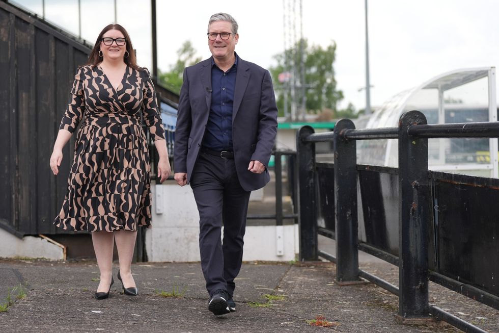 Labour Party leader Sir Keir Starmer walks with Labour's candidate for Stafford, Leigh Ingham