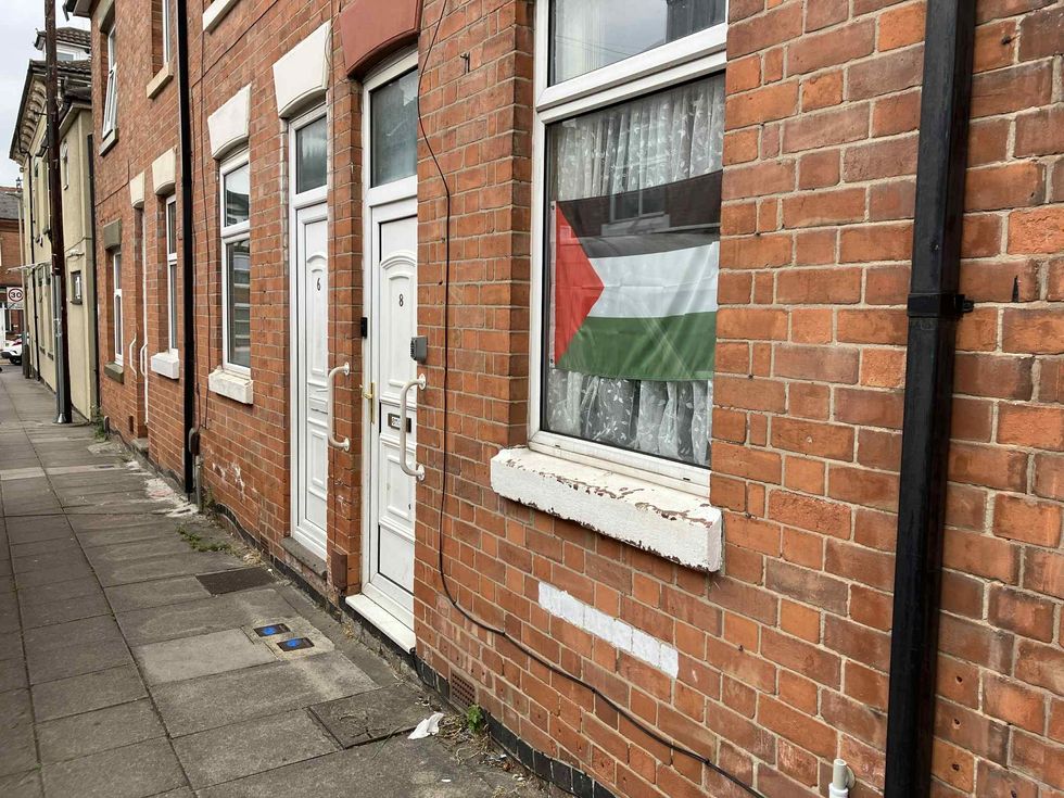Palestinian flags remain adorned across the terraced houses, with flyers advertising various protests and marches. One that appeared several times read: "All Out For Gaza"
