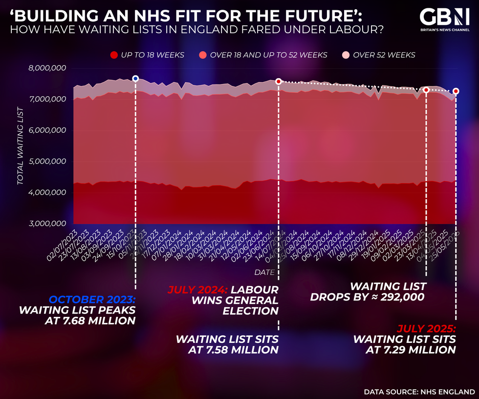 Nonetheless, numbers have fallen since the all-time record of October 2023, when 7.68 million people were waiting to be seen.