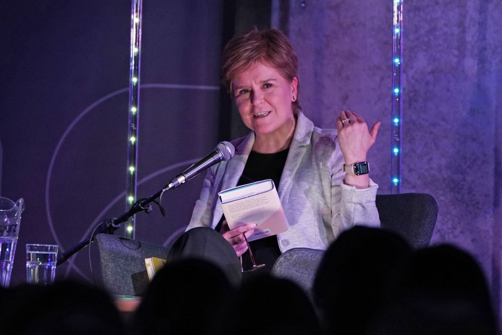 Nicola Sturgeon at the Paisley Book Festival in Renfrewshire, where she chaired a discussion with author Chitra Ramaswamy about her book Home Lands on February 17, 2023.