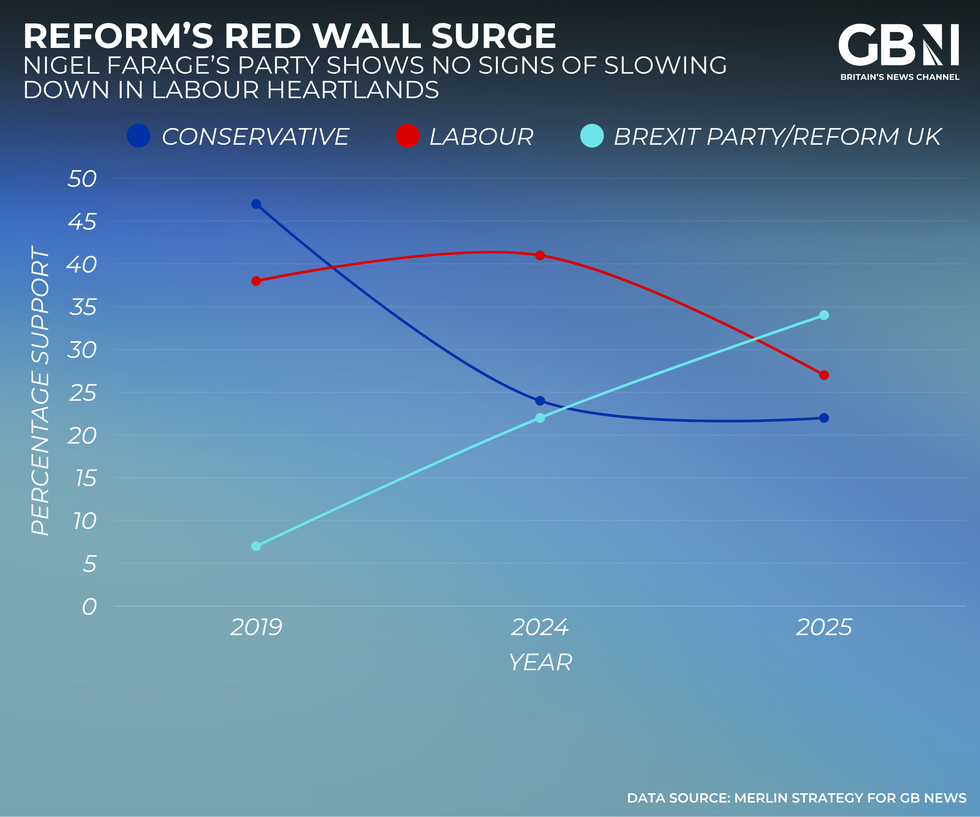 Nigel Farage storms into seven-point lead over Labour in Red Wall as Reform's support surges