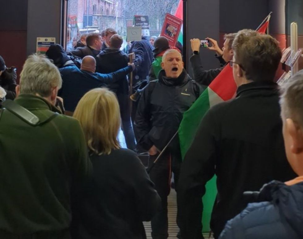 They are thought to have been protesting against Sir Keir Starmer's stance on the ongoing war in Gaza, shouting that Labour should be "ashamed" of its position.