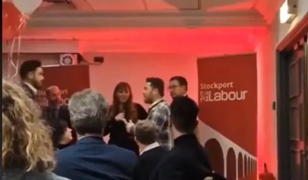 Part way through the speech by Rayner, Neder approached the stage and started shouting about the need for an Israel-Hamas ceasefire.