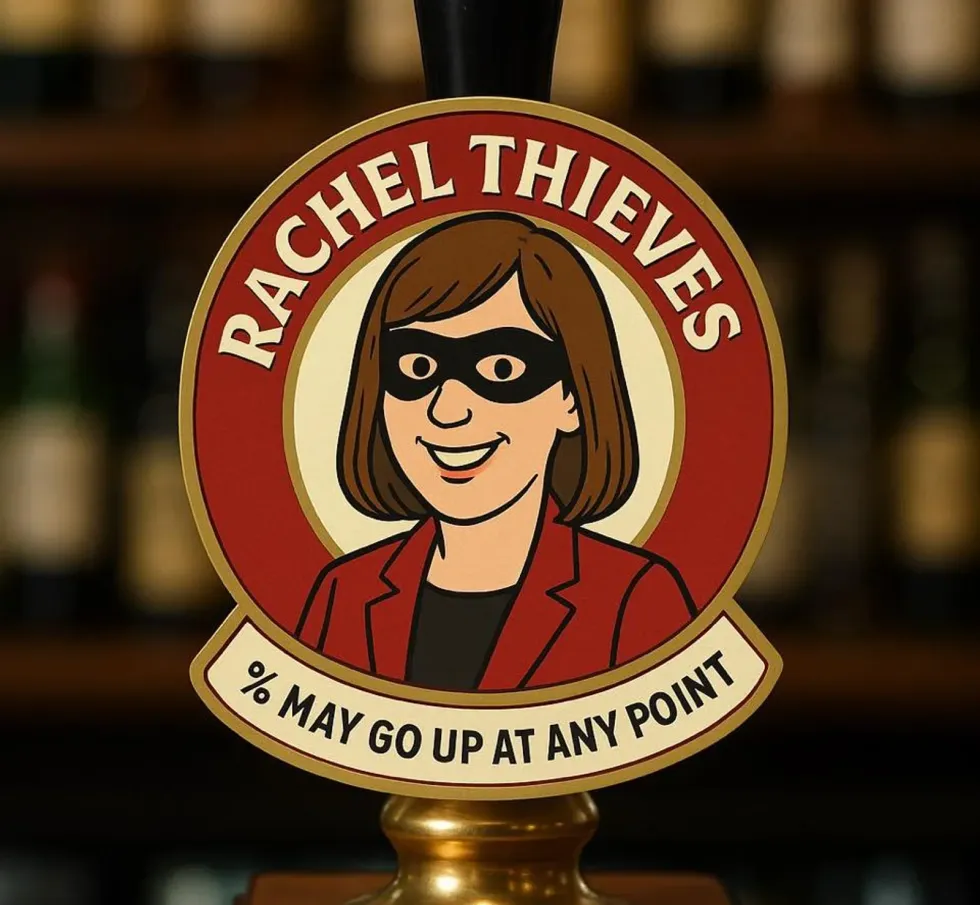 Chris Ghazarian, who runs The Green Dragon in the village of Flaunden in Hertfordshire, created the spoof pump labelled “Rachel Thieves” as a visual statement highlighting rising costs faced by pubs.