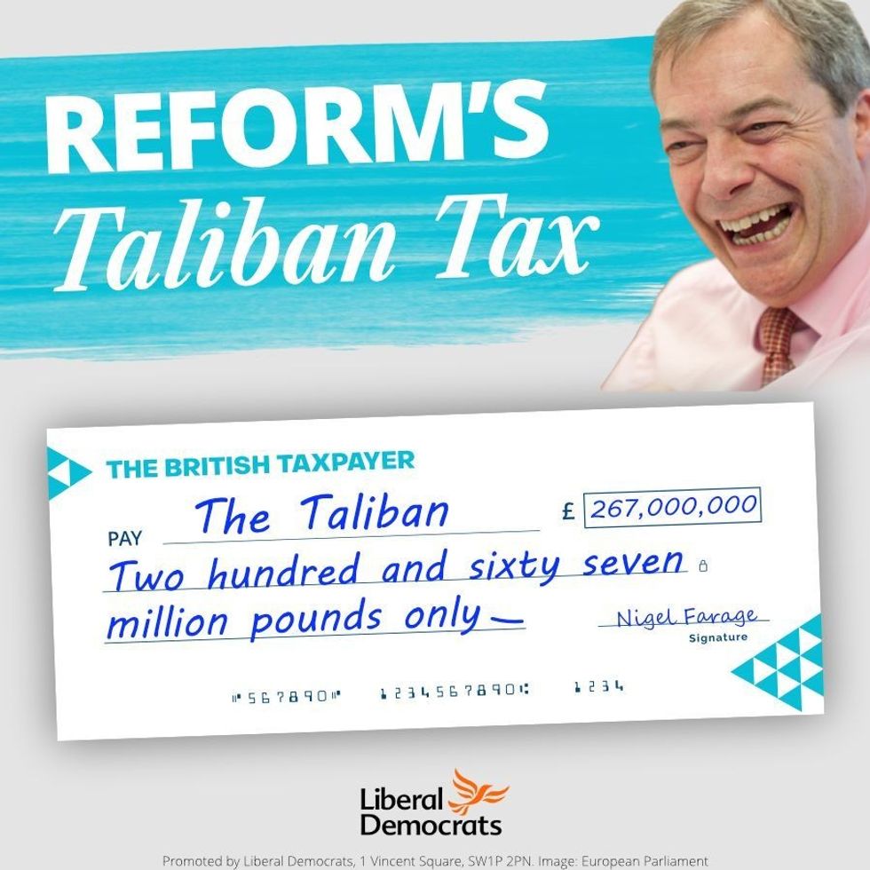 Lib Dems slam Reform's 'Taliban Tax' claiming it would cost taxpayer £267 million per year