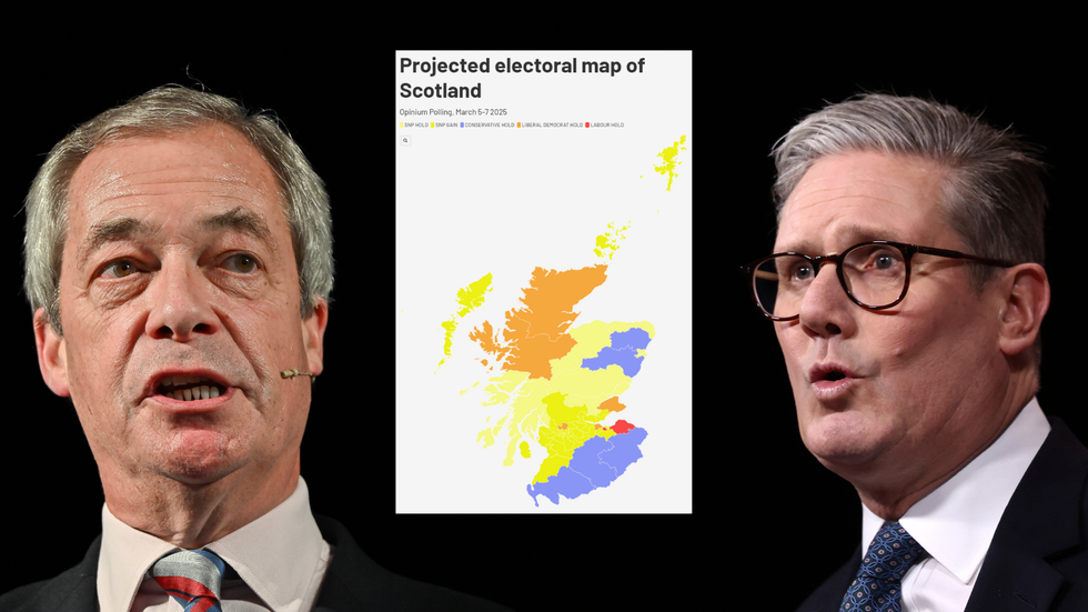 The research, conducted between March 5 and 7, shows Scottish voters abandoning Labour in droves, with Starmer’s party losing 35 of the 37 seats they won in July 2024.