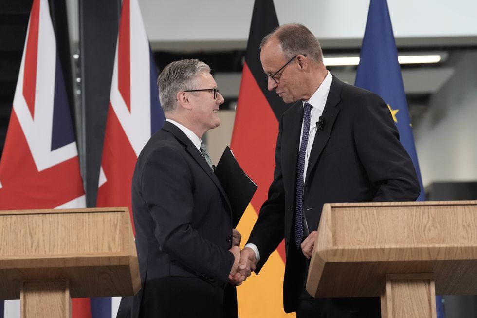 Prime Minister Sir Keir Starmer and German Chancellor Friedrich Merz shake hands