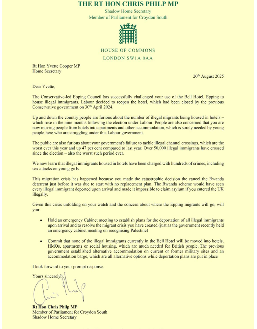 READ IN FULL: Shadow Home Secretary Chris Philp calls on Yvette Cooper to call an emergency Cabinet meeting