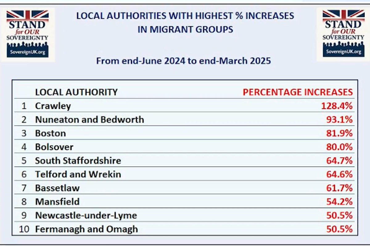 REVEALED: Local authorities with the highest per cent increase in migrant groups