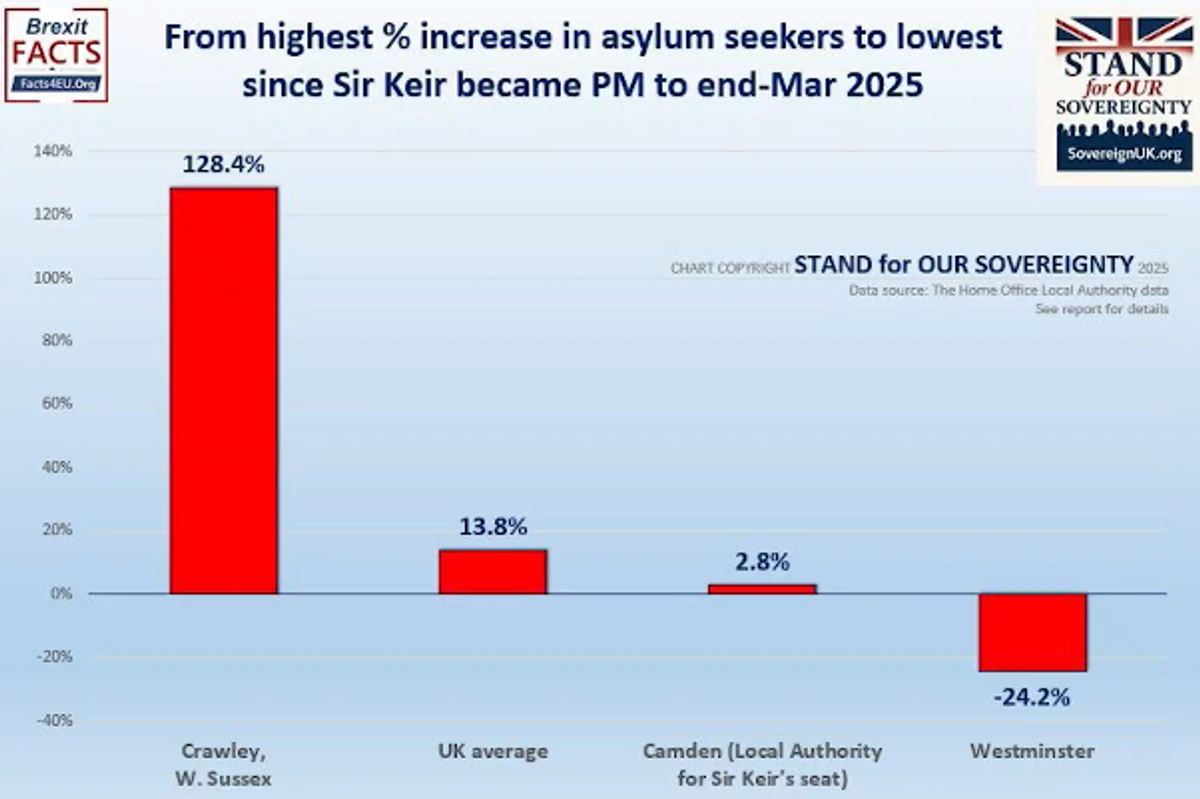 REVEALED: From highest per cent increase in asylum seekers to lowest since Sir Keir Starmer became PM to end-March 2025