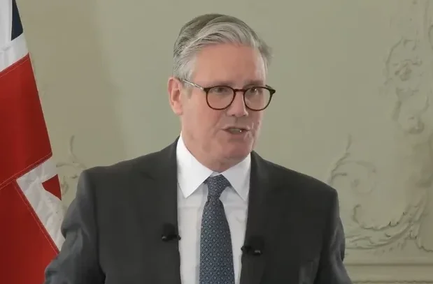 Keir Starmer arrives at the press conference following ceasefire talks in Paris
