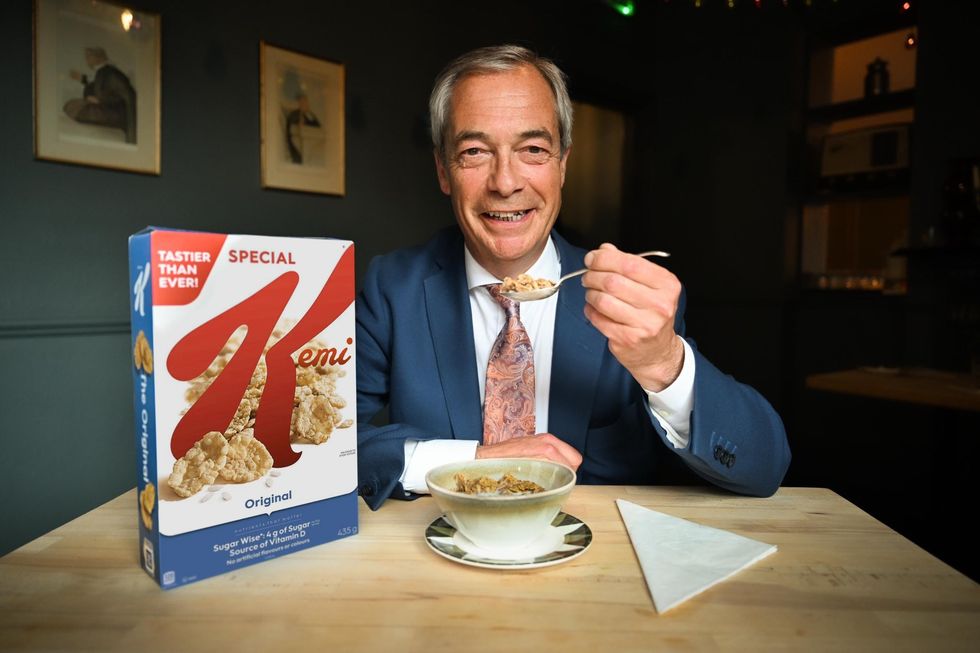 Nigel Farage takes aim Kemi Badenoch's Tories in hilarious breakfast photo