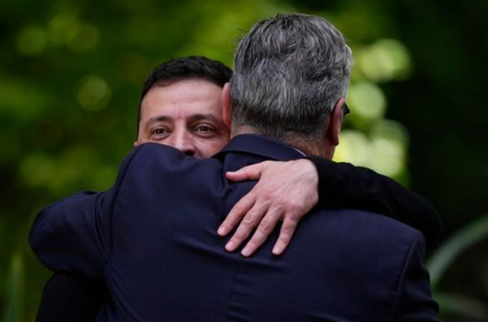 Sir Keir Starmer and Volodymyr Zelensky share hug outside Downing Street