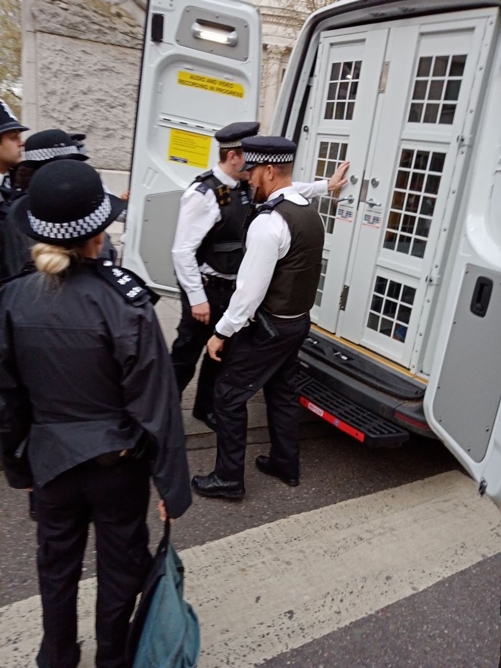 About half a dozen protesters were detained by police while they were unloading placards from a van.