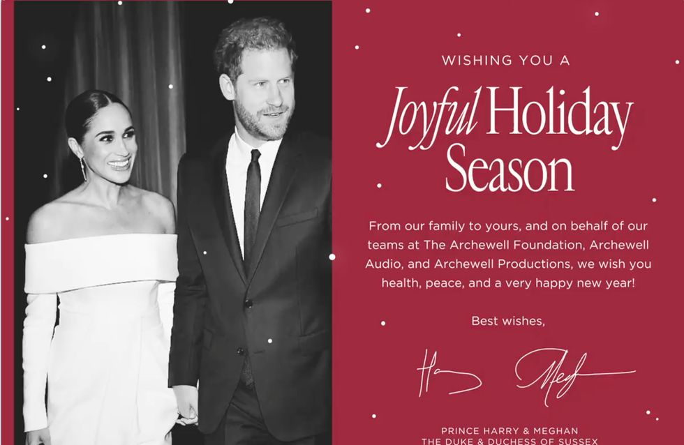 It reads: “From our family to yours, and on behalf of our teams at The Archewell Foundation, Archewell Audio, and Archewell Productions, we wish you health, peace, and a very happy new year.”