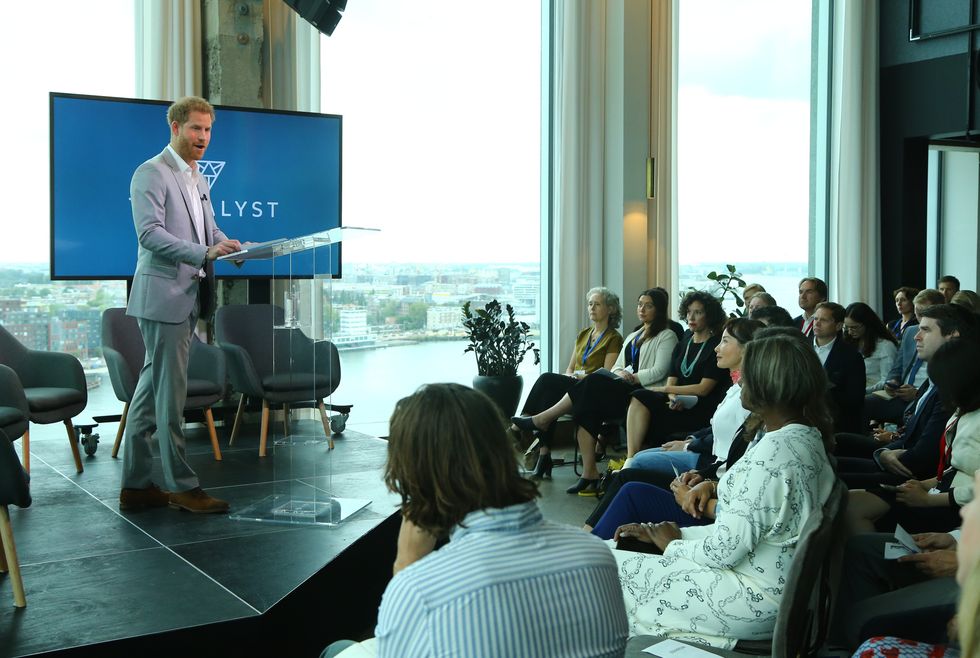 The Duke of Sussex (left) at the A'DAM Tower in Amsterdam during the launch of a new travel industry partnership.