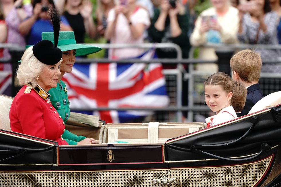 The three children were joined in the carriage by the Queen, who is Colonel of the Grenadier Guards, and the Princess of Wales as Colonel of the Irish Guards.