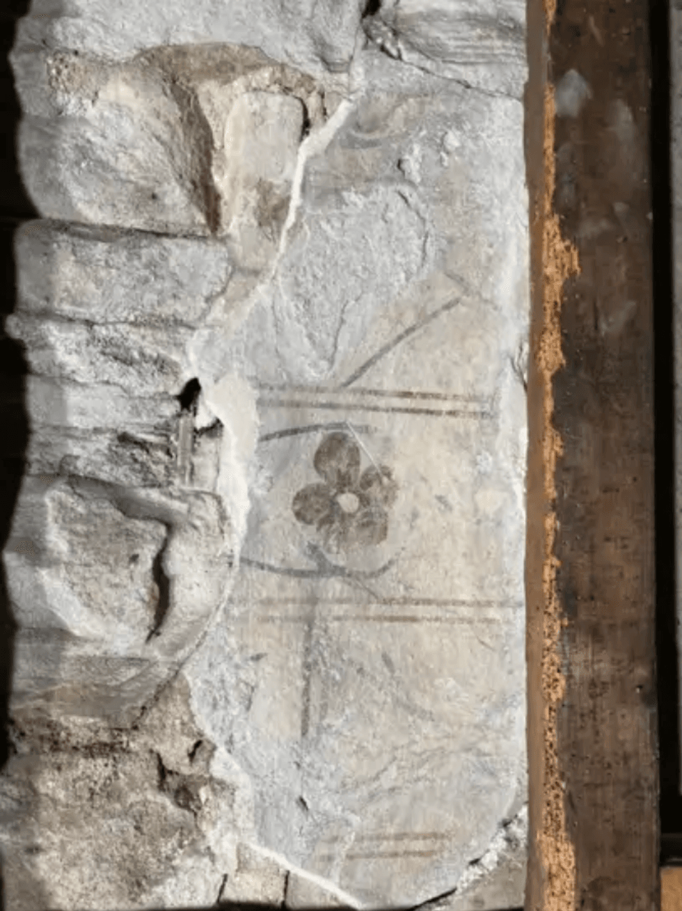 The painting, which shows a red flower with its stem, is believed to date from the late 13th or early 14th Century, according to experts examining the find.