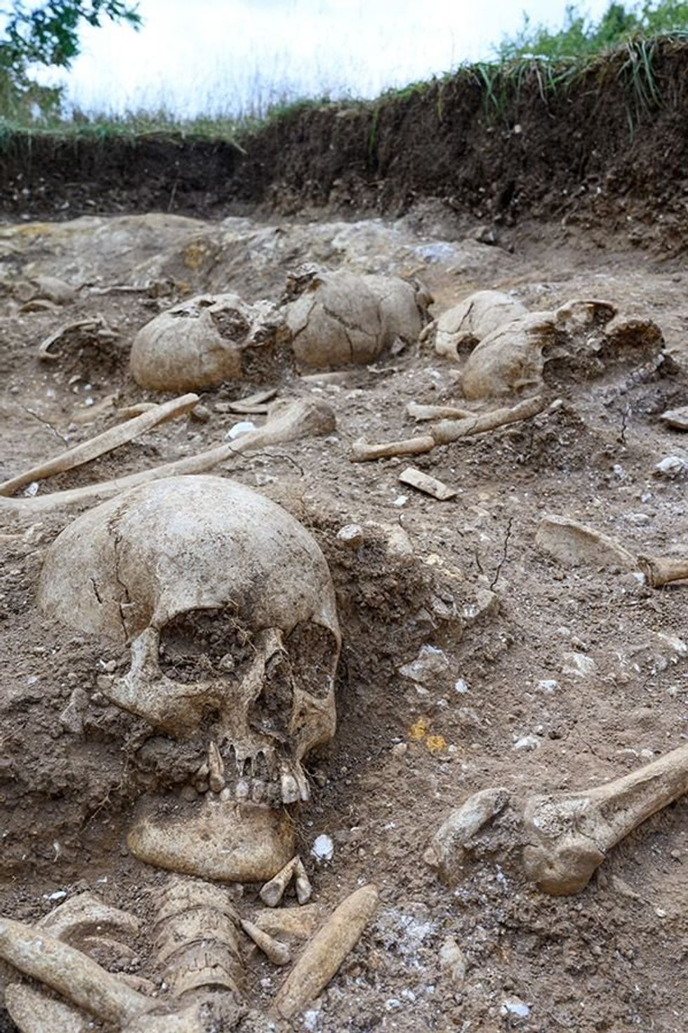 The mixture of whole bodies and dismembered parts is highly unusual, even for a mass burial of this kind.