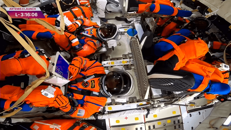 Four astronauts are now sealed inside the Orion spacecraft at Kennedy Space Centre in Florida, awaiting tonight's historic departure for the Moon.