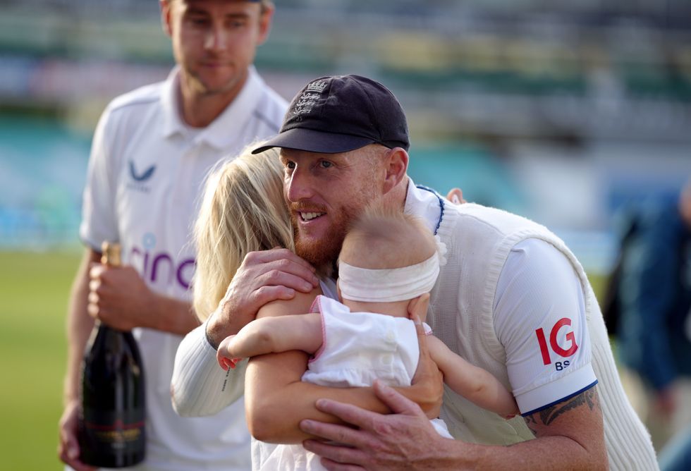 England's Ben Stokes with Mollie King and her daughter Annabella during day five of the fifth Ashes Series test match.