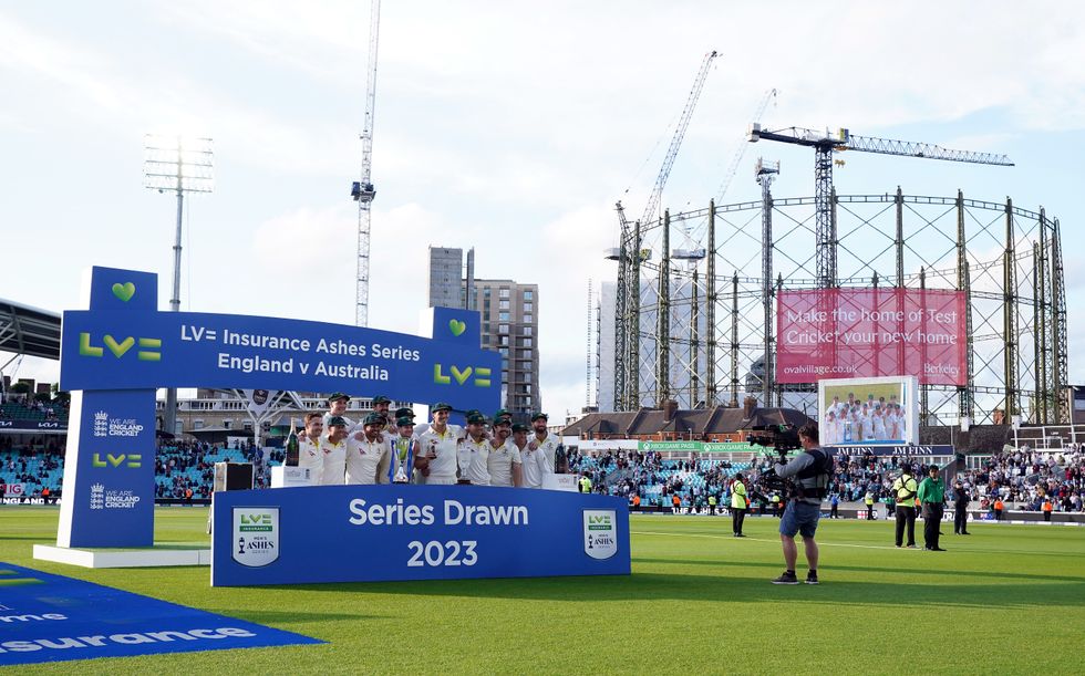 Australia captain Pat Cummins and team-mates celebrate with the Urn after retaining the Ashes at The Oval.
