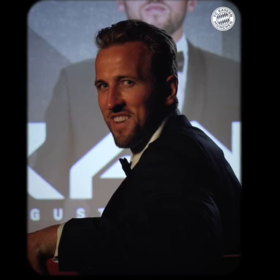 The German champions announced their summer splash signing with a quirky video that sees a black tie clad Kane in a cinema, turning to face the camera and grimacing awkwardly.