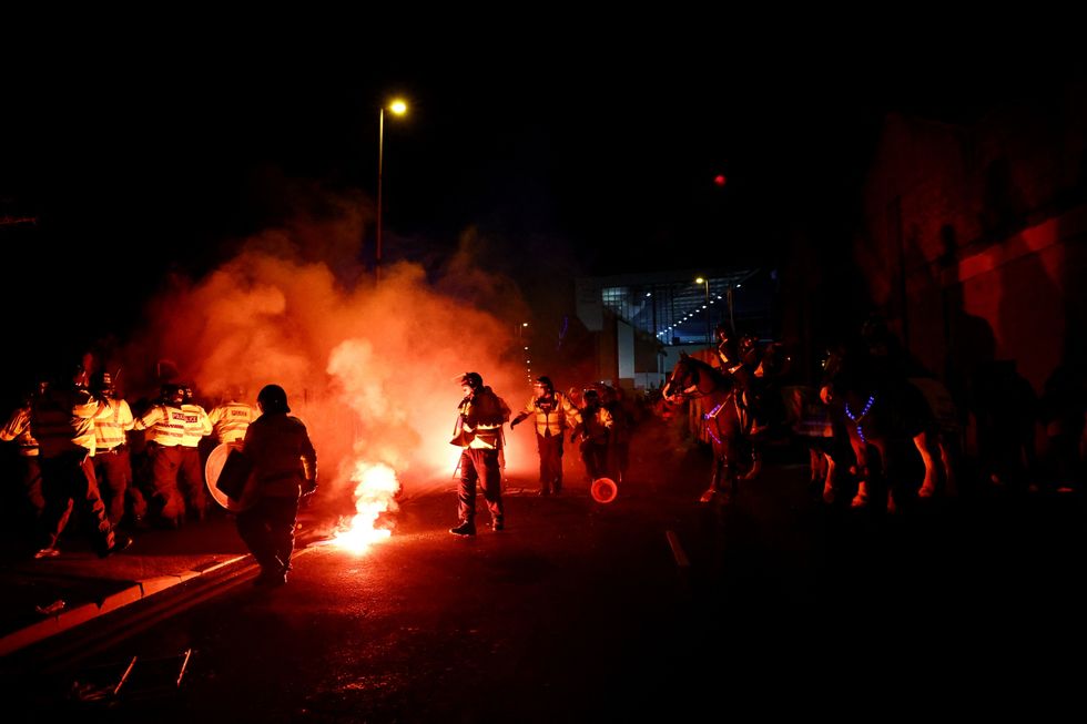 A number of flares were lit and officers were forced to pen the travelling cohort into a car park as they sort to restore order.