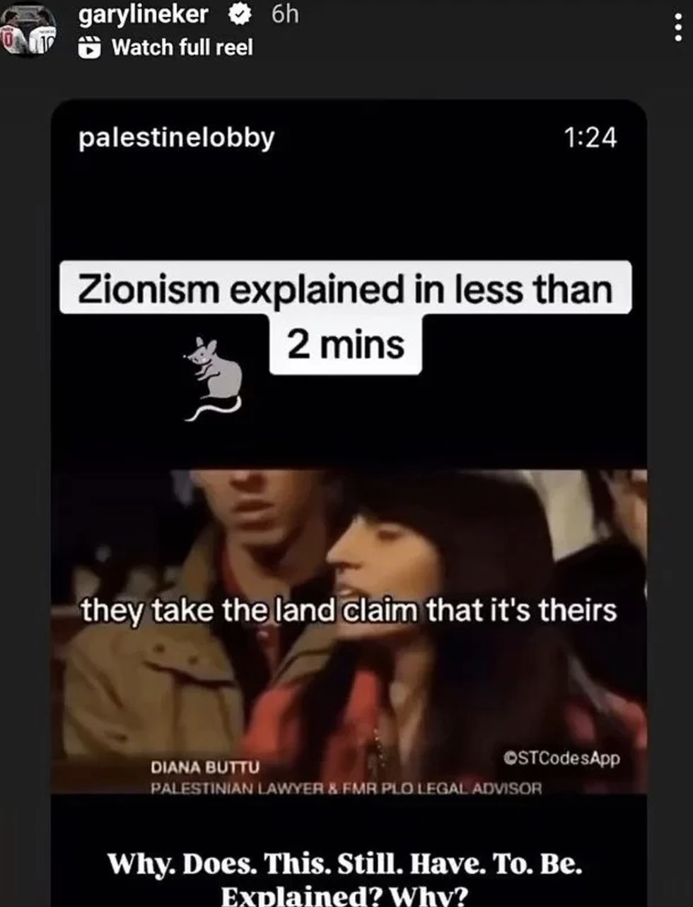The former England football captain, who is the broadcaster's highest-paid presenter earning £1.4 million annually, shared a post on Instagram featuring a rat, widely considered an anti-Semitic trope, as part of a video supporting Palestine.