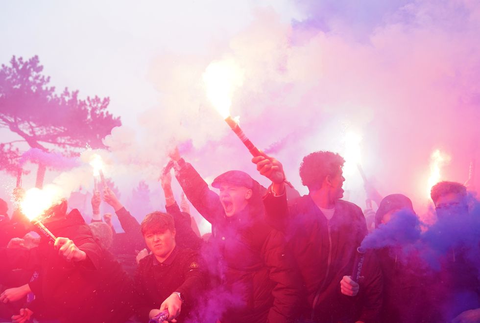 The majority shareholder's car was pelted with flares and beer cans
