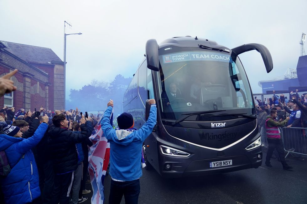 As the car approached Portman Road, Ipswich fans started hurling flares and beer cans at the vehicle.