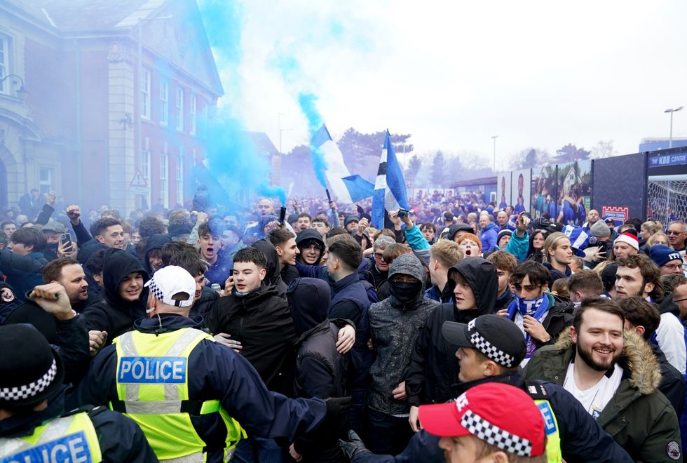 Ipswich fans had likely turned out in a bid to intimidate the opposition team, rather than Smith's car behind it.