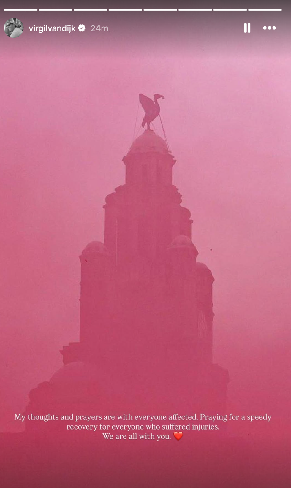Virgil van Dijk posted on his Instagram story to share his thoughts and prayers
