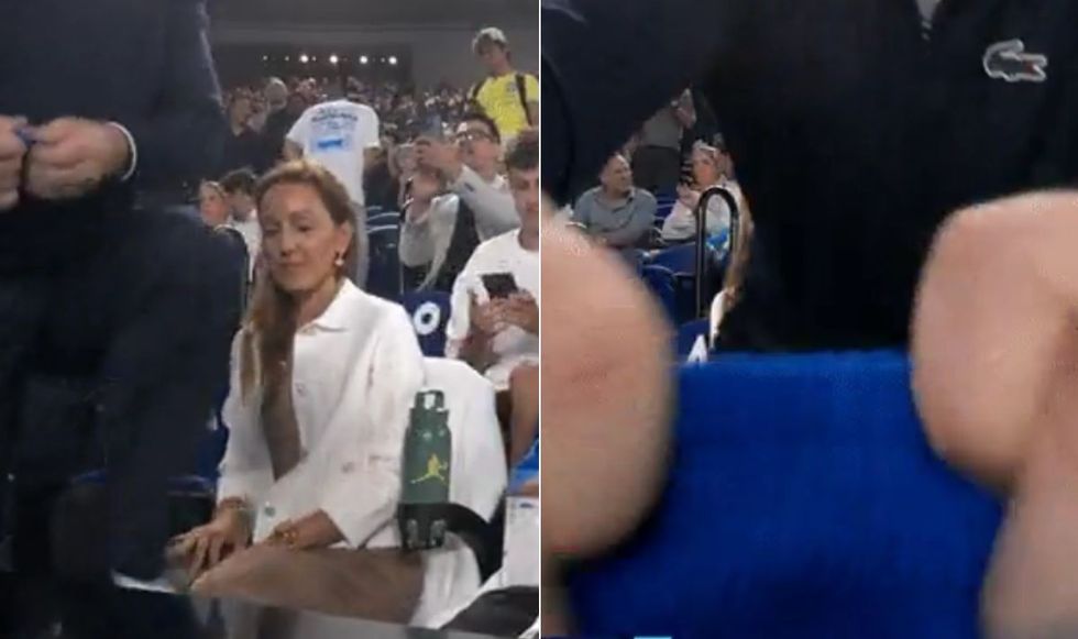 A camera at the side of the court panned towards Djokovic's family, with his wife Jelena Djokovic and kids sat down in the front row.