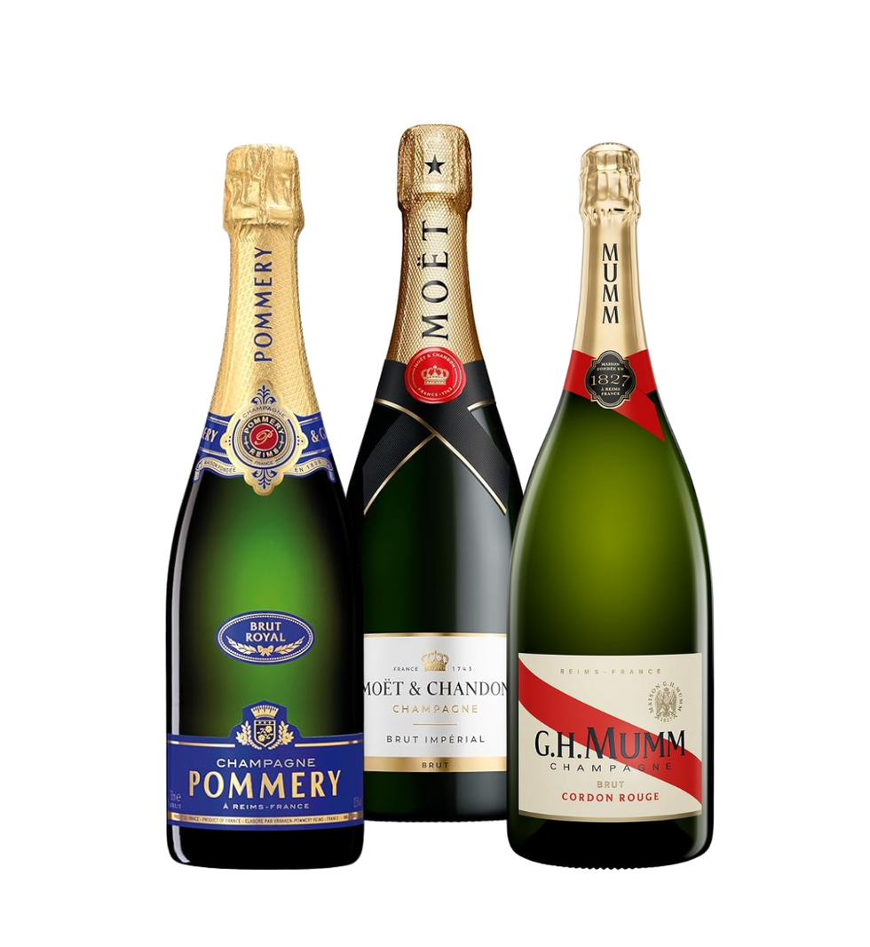 - This includes bottles from brands like Moet, G.H. Mumm, Pommery, and more
